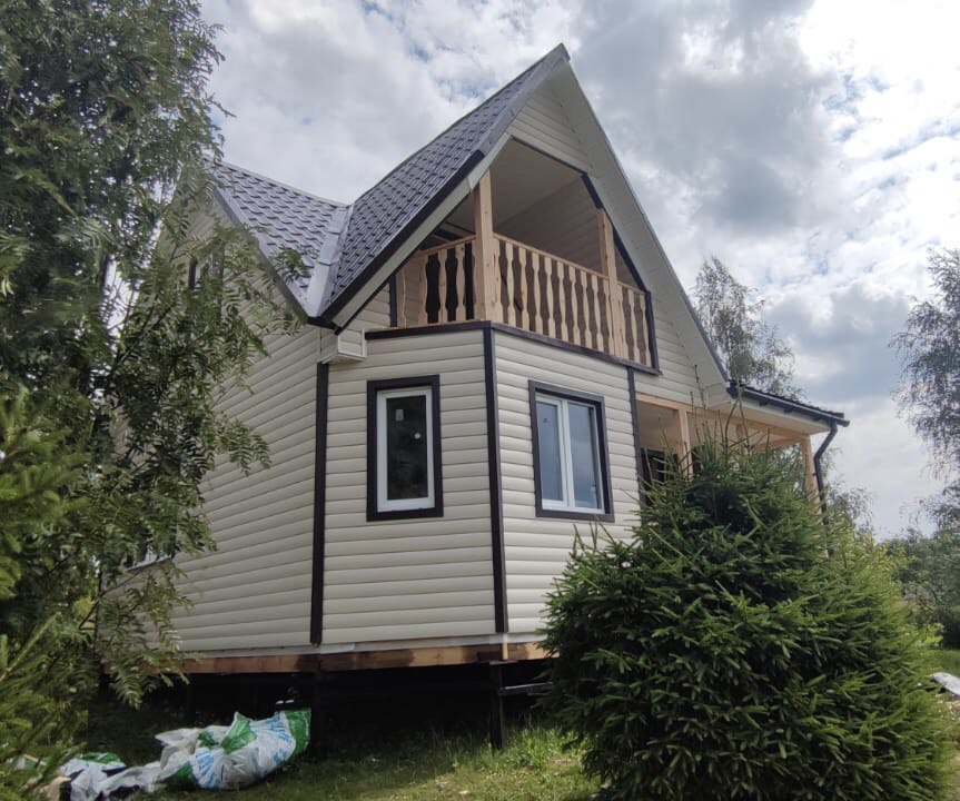 Каркасный дом с мансардой и отделкой