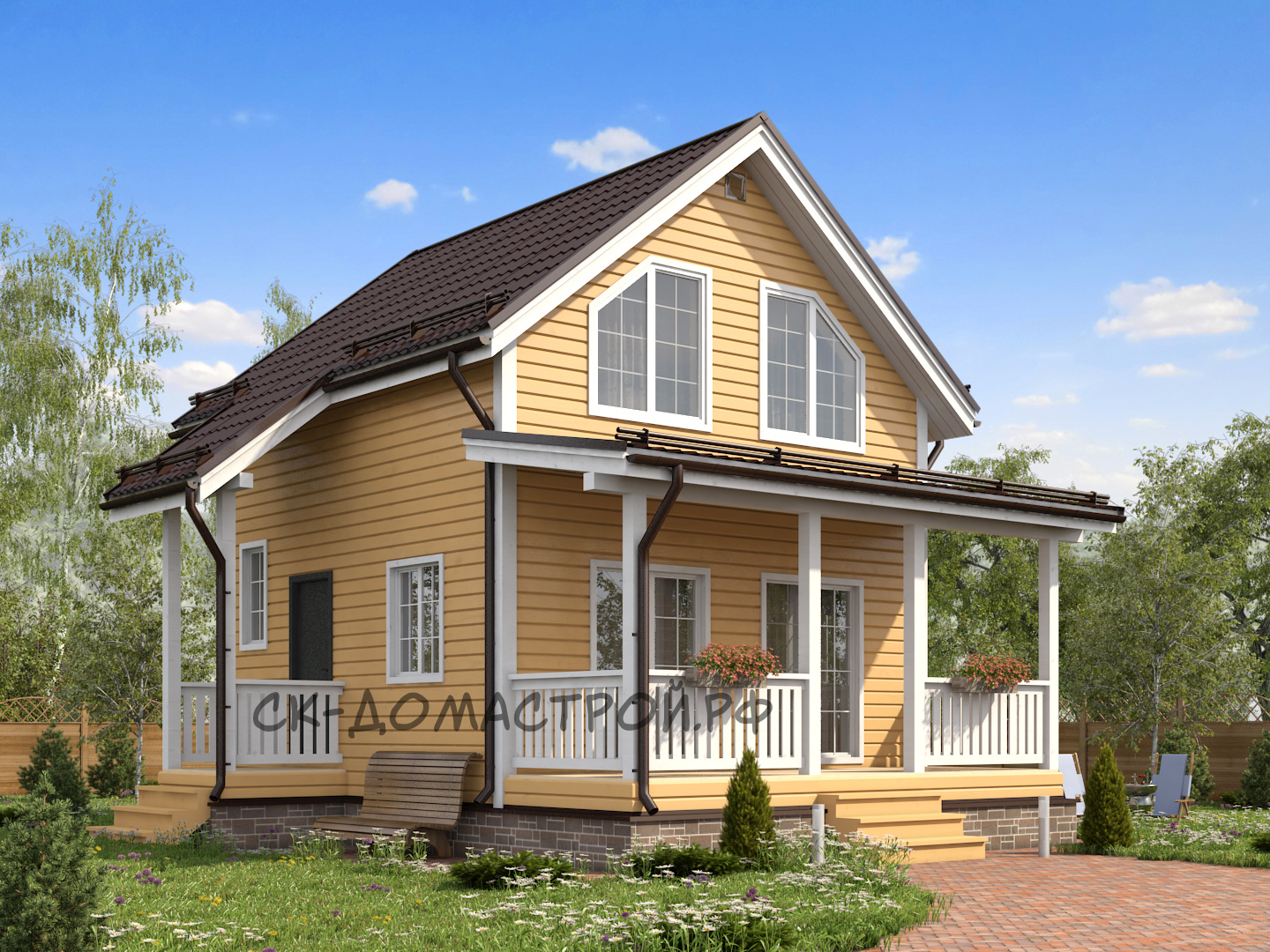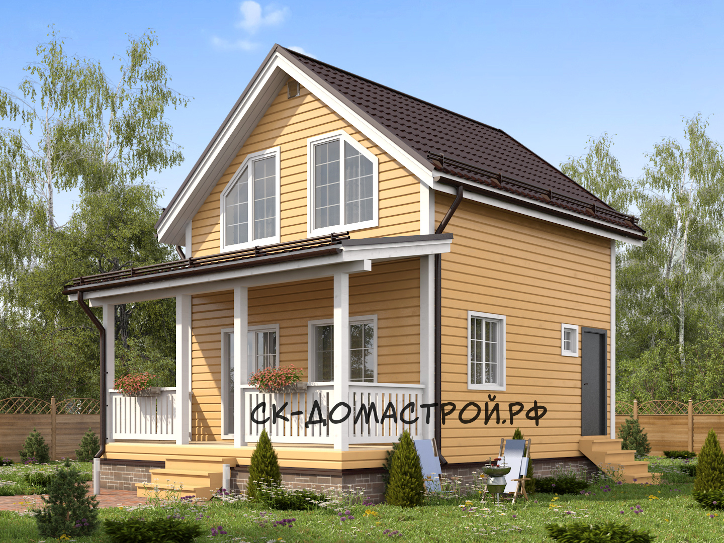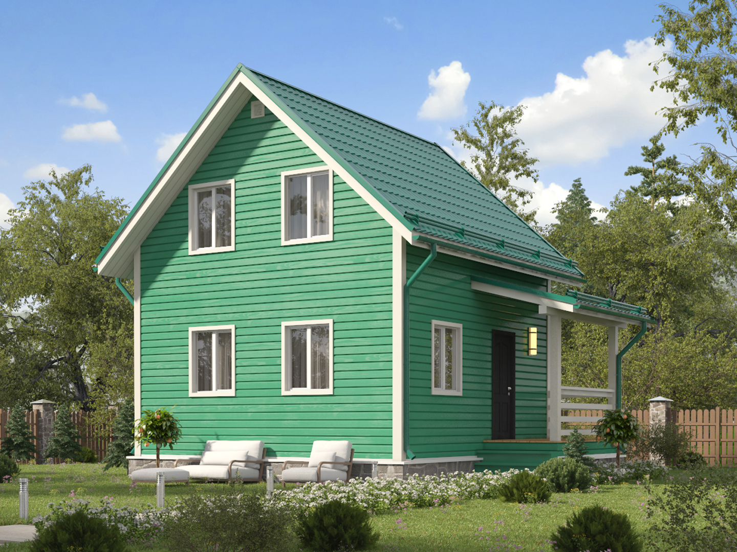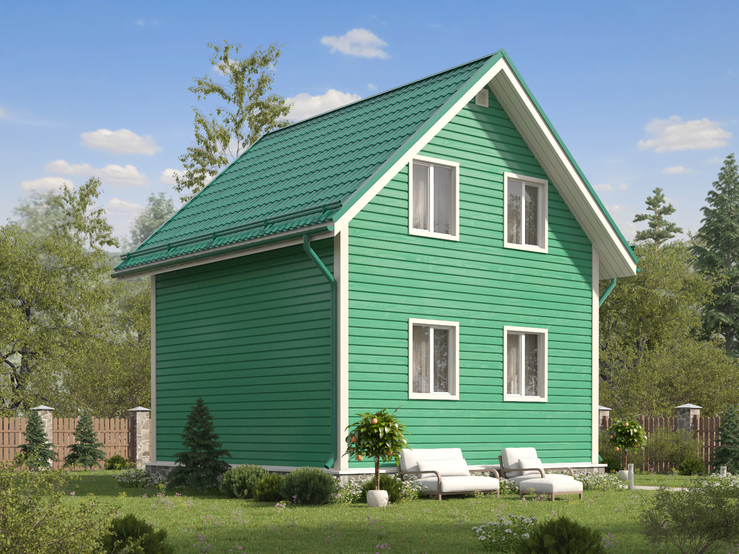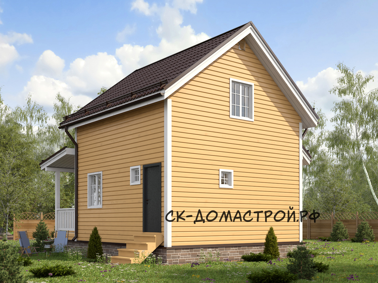Каркасный дом с фронтоном и 2м светом