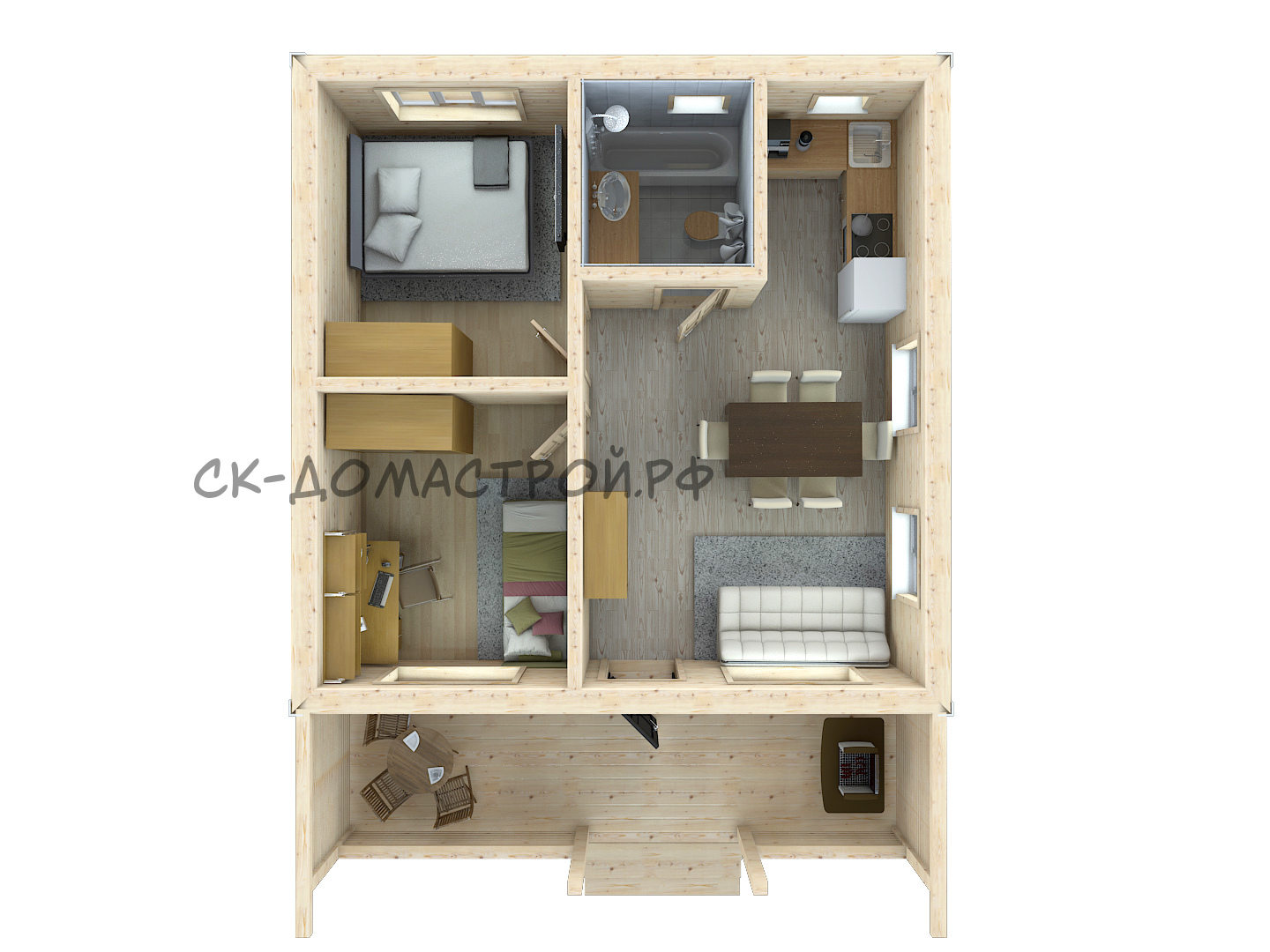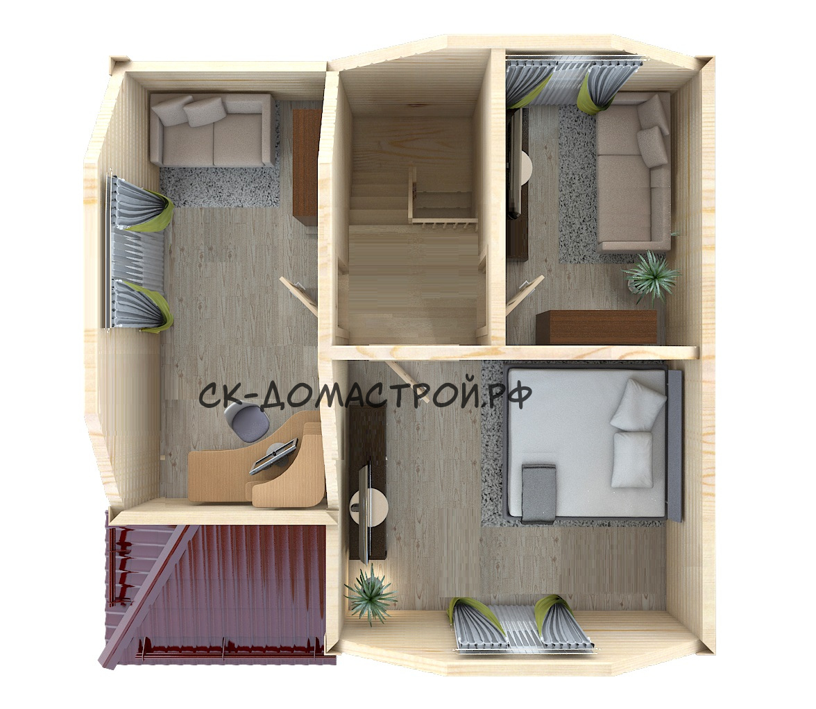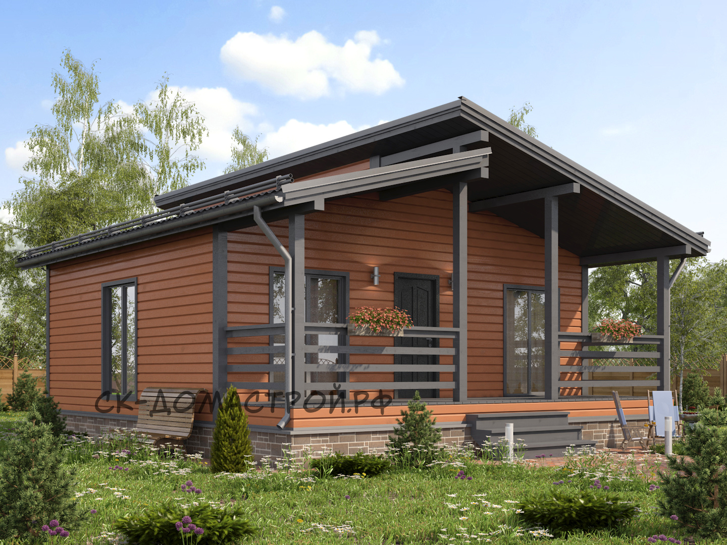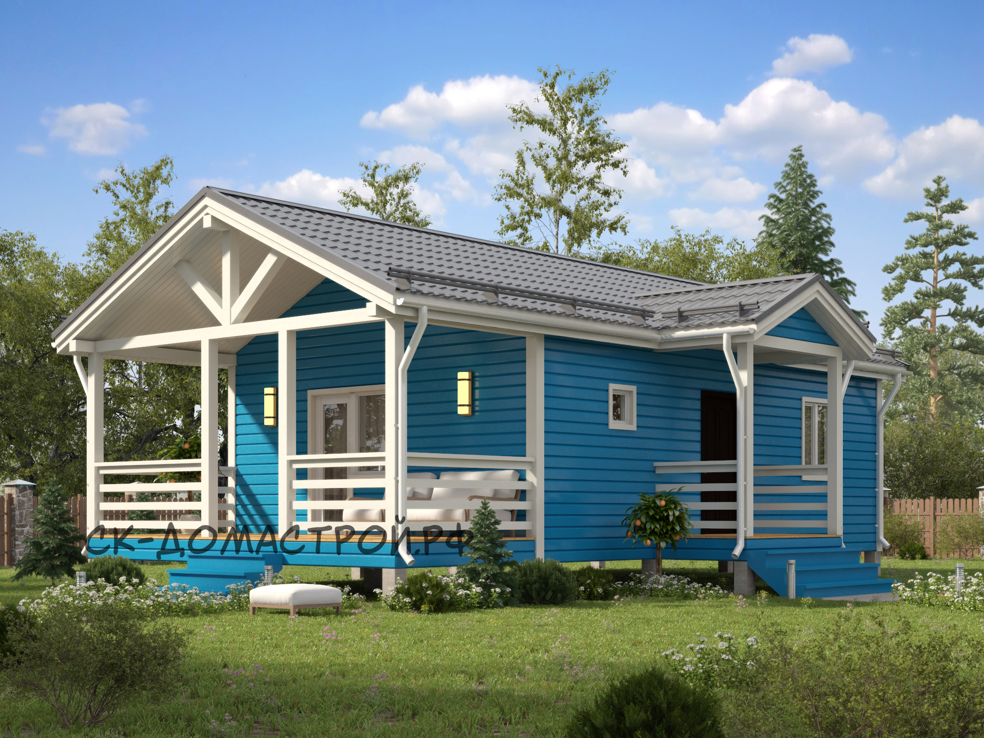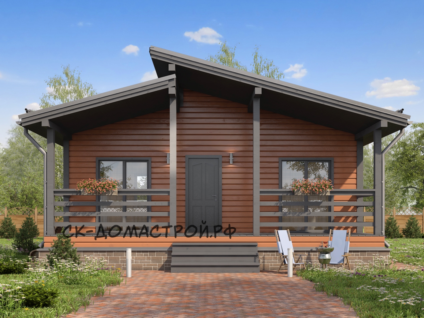 Каркасный дом с фронтоном и 2м светом