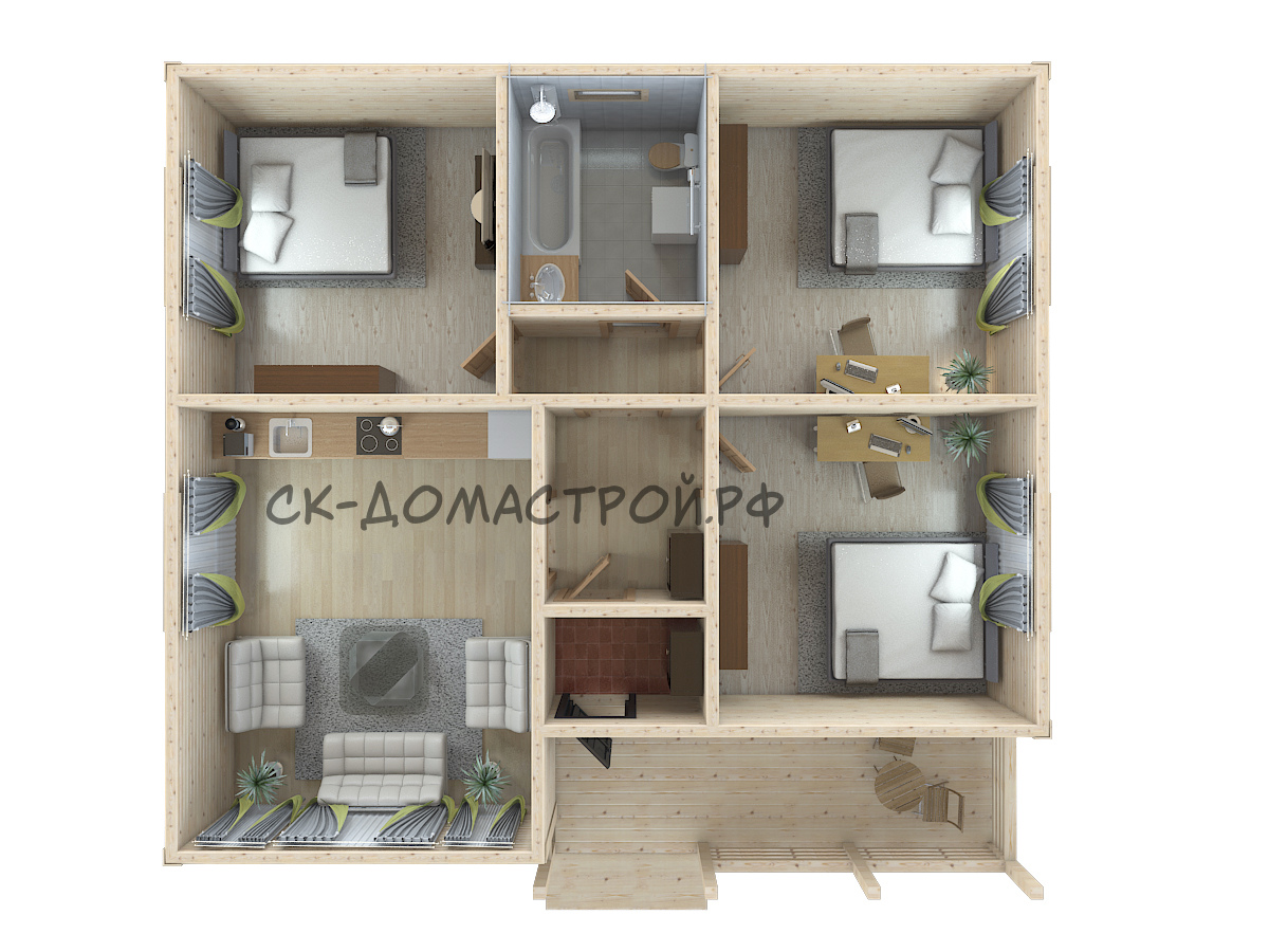 | Габариты | 8х8 | Площадь дома, м² | 64 |