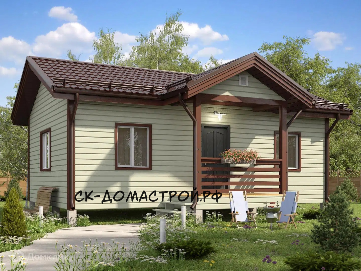 Одноэтажный каркасный дом