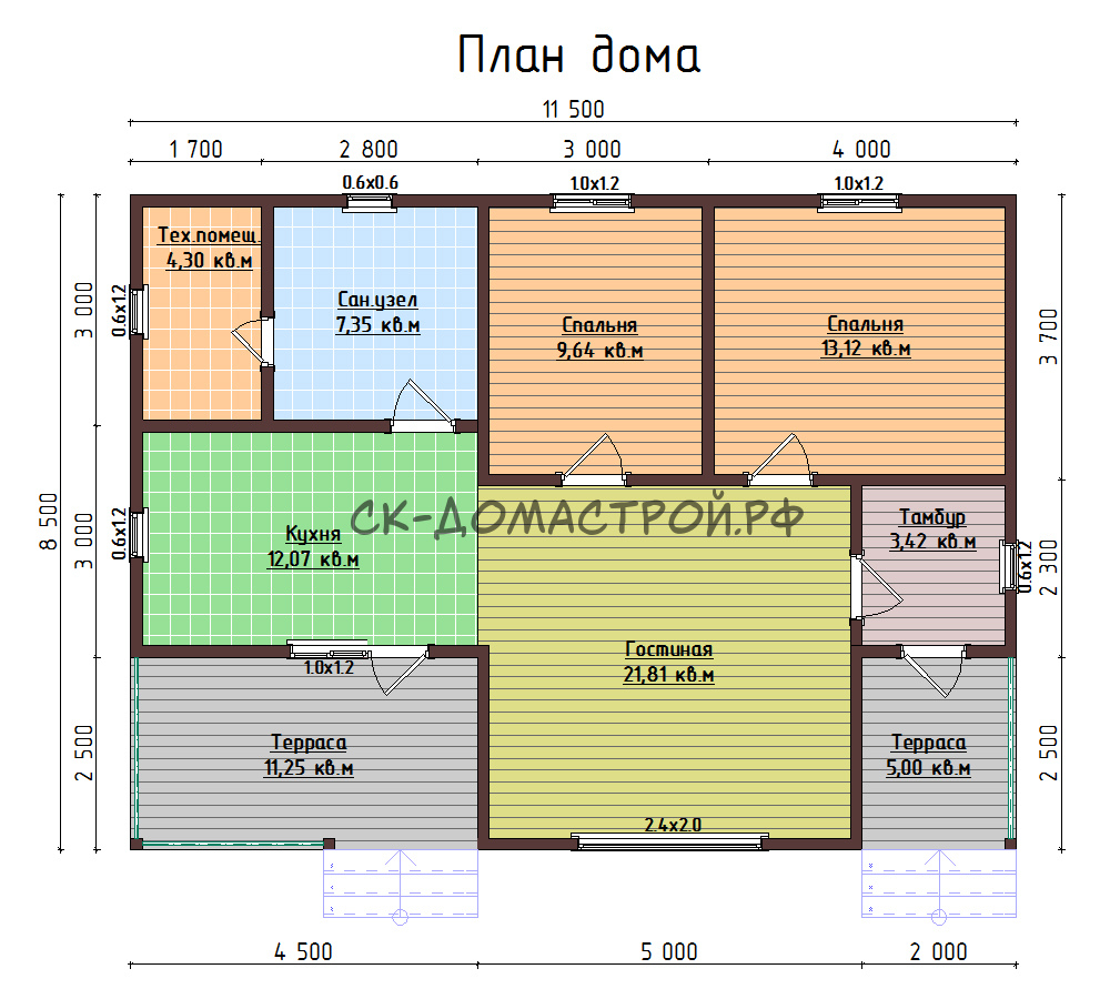 | Габариты | 6х11,5 | Площадь дома, м² | 72 |