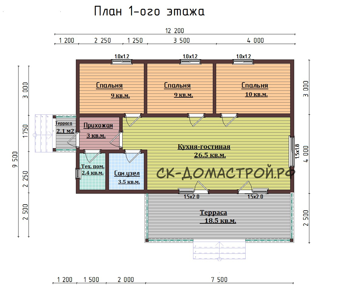 | Габариты | 9,5 х 10,5 | Площадь дома, м² | 97 |